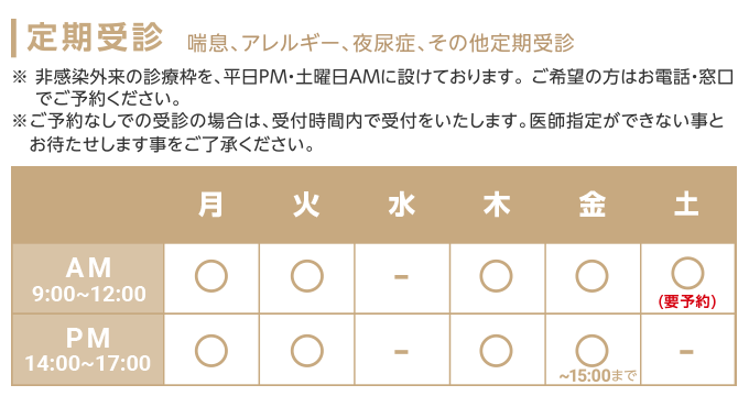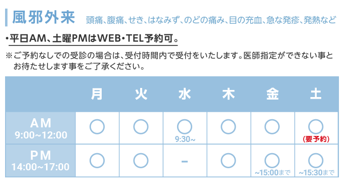 *非感染外来:要問合せ ※土曜午前は予約が必要です