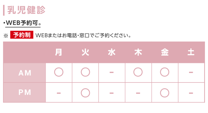 ※予防接種・乳児健診はWEB予約の場合、希望日の27日前から3日前までにご予約ください。